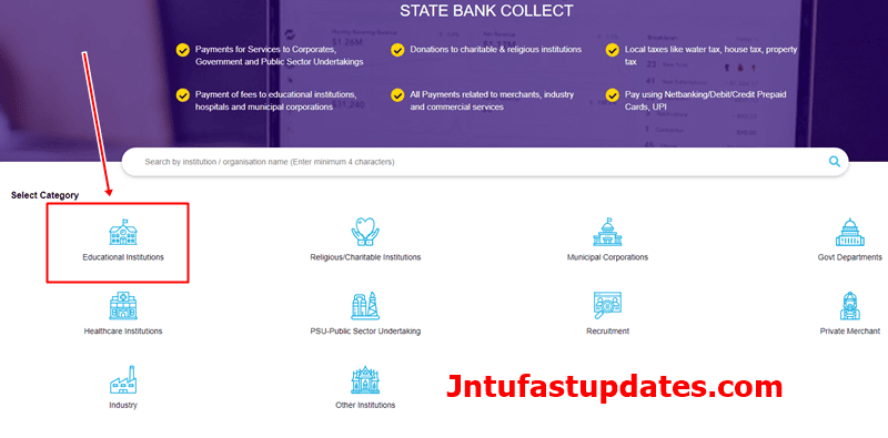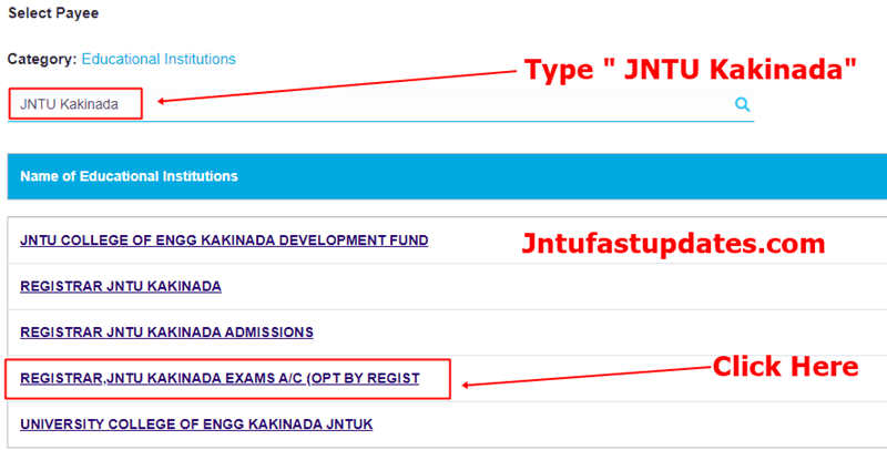 Type “JNTU Kakinada” at Search for Educational Institutions and Click on “REGISTRAR,JNTU KAKINADA EXAMS A/C (OPT BY REGIST“