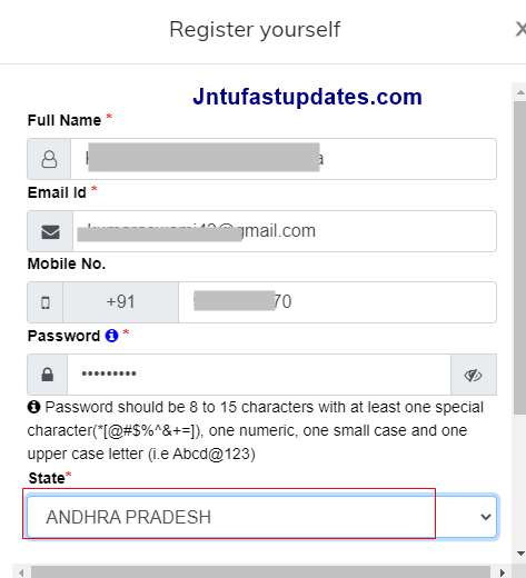 Step – 3 Fill the registration form with Required Details like Name, Mail id, phone number and Select “Andhra Pradesh” State.