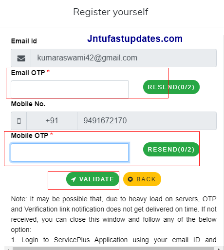 Step – 4 Complete the Validation Process by entering the OTP recived through Mail id and Phone No.