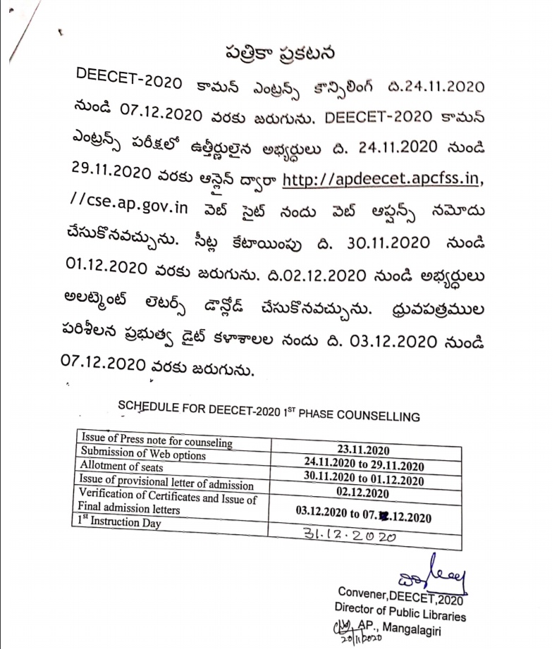 AP DEECET Counselling Schedule 2020