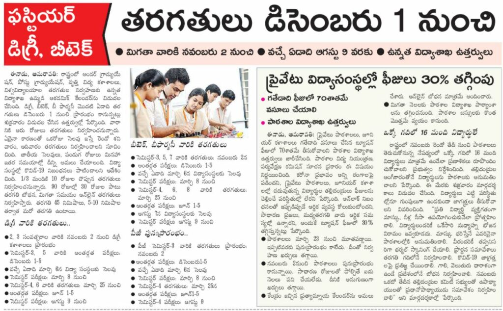 AP Govt – 30% Less Fee in Private Schools/Colleges for A.Y 2020-21