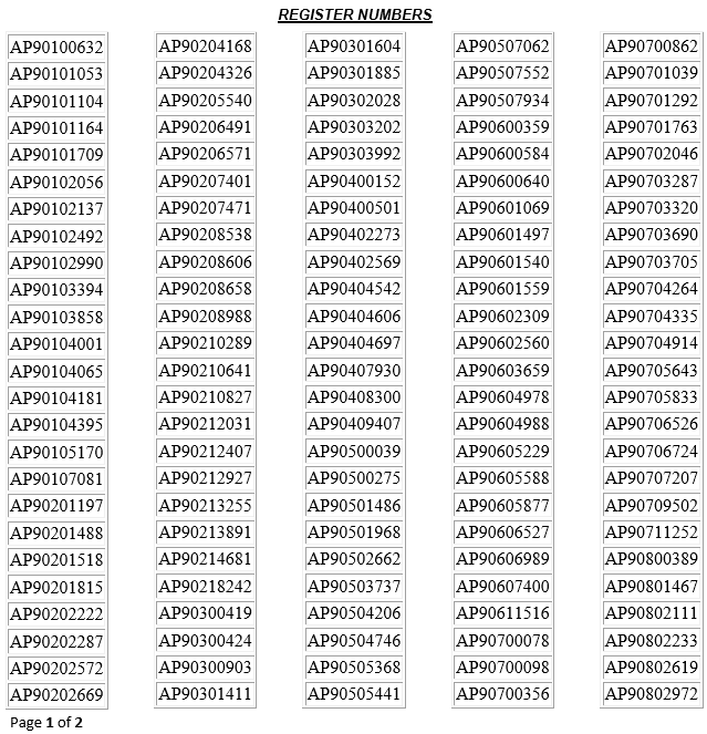 Released on 22-03-2017: The exact dates of Oral Test (interview) for each candidate will be placed in the Commission’s website. The Individual call letters will be sent to candidates in due course. A copy of this result can also be seen on the Commission’s Website: psc.ap.gov.in and also in the Commission’s Notice Board.(The earlier list published on.12.01.2017 being defective was cancelled on.09.02.2017 and the fact was informed through web-site as well as press notification).