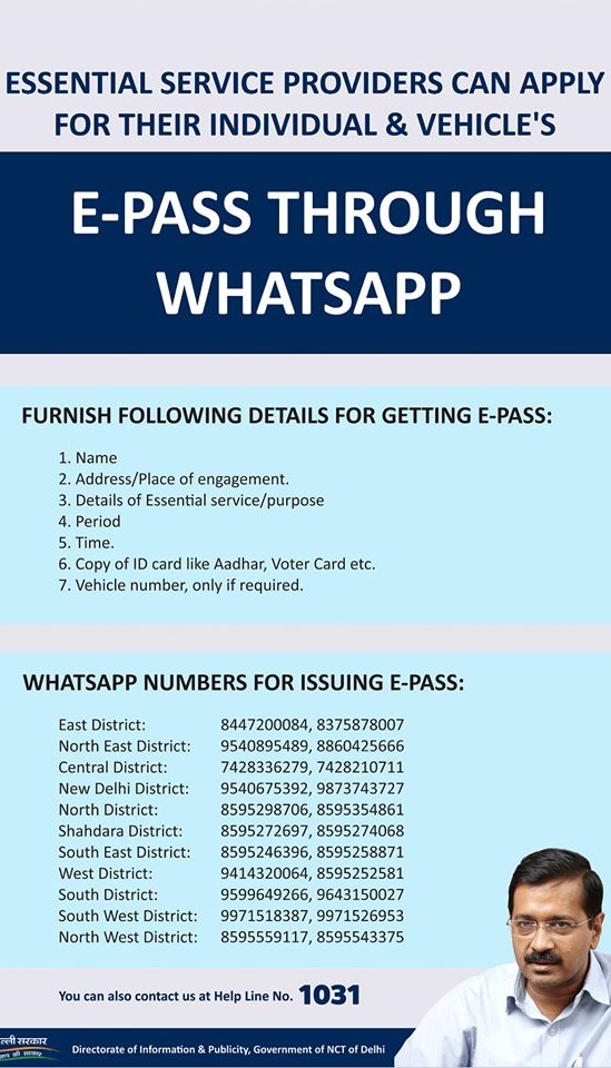 Delhi E-pass for COVID During Lockdown – Mobile Numbers to Contact [Area-wise]