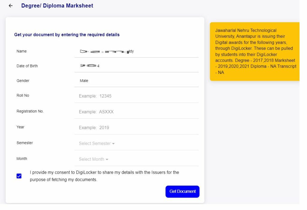 JNTUA Digilocker Student Guide to Download Degree/Diploma Marksheet
