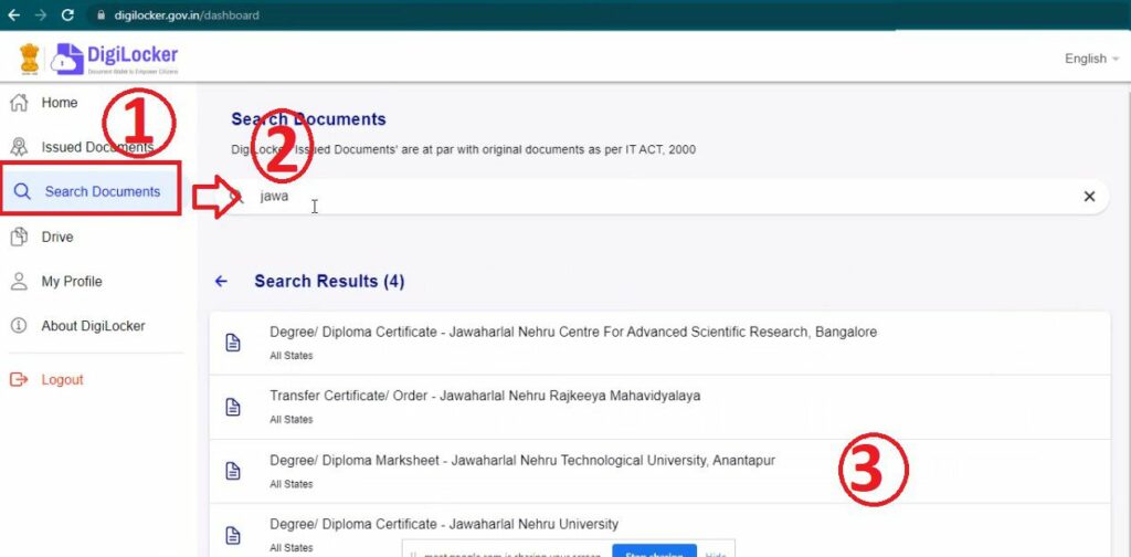 Step 4: You will be logged into the DigiLocker, As per the above document