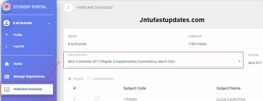 JNTUA Hall Tickets Download: Jawaharlal Nehru Technological University Anantapur (JNTUA) has announced New Student portal i.e., jntuastudentportal.ac.in. In this portal students can Register for Regular & Supply Examinations Through Online and Download their respective Hall tickets.