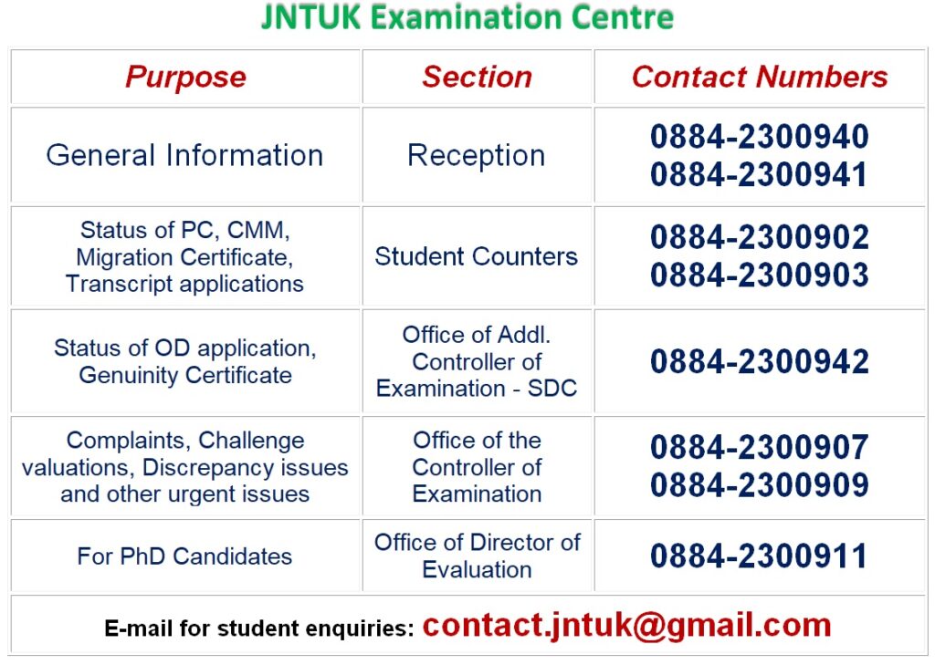 | E-mail for Student Enquiries: | contact.jntuk@gmail.com |