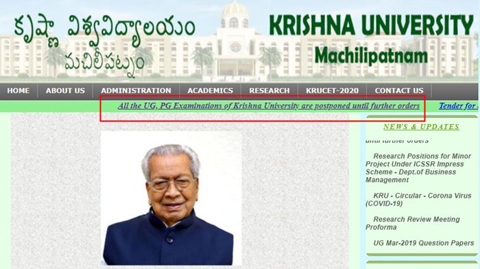 All the UG, PG Examinations of Krishna University are postponed until further orders