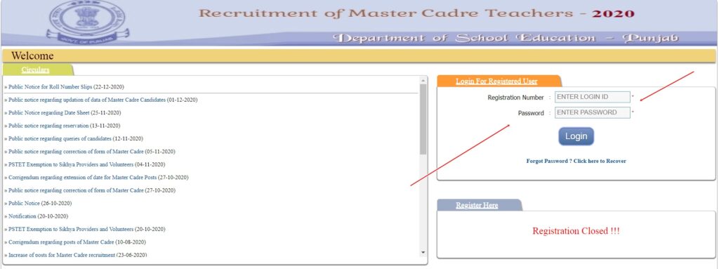 - On the homepage, you can find the Punjab Master Cadre Teacher Admit Card 2020 download link.