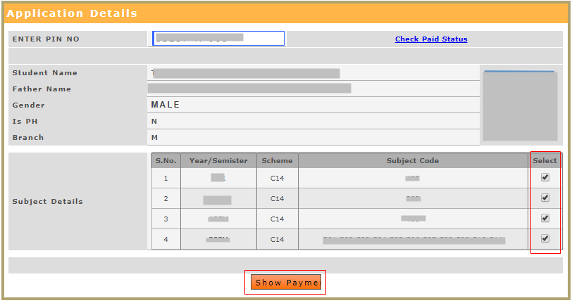 4. Select the appropriate selection as per your requirement and click on show payme button.