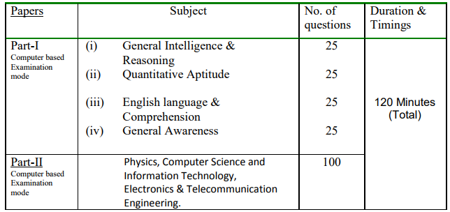 The examination would comprise 200 questions carrying 200 marks for two hours duration. The question paper would have two parts, Part – I & Part – II.