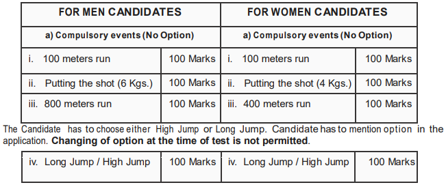 (A) Physical Efficiency Tests: Maximum 400 marks :