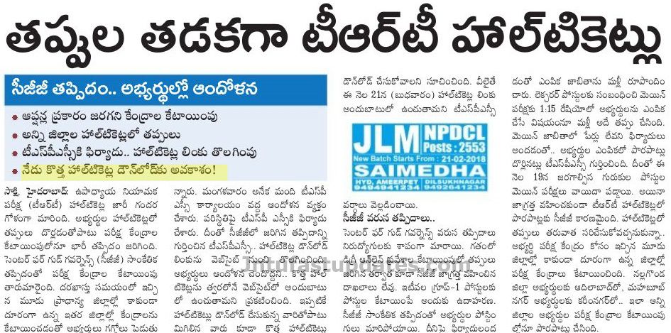Telangana TRT Hall ticket 2018 Download Name Wise centers List