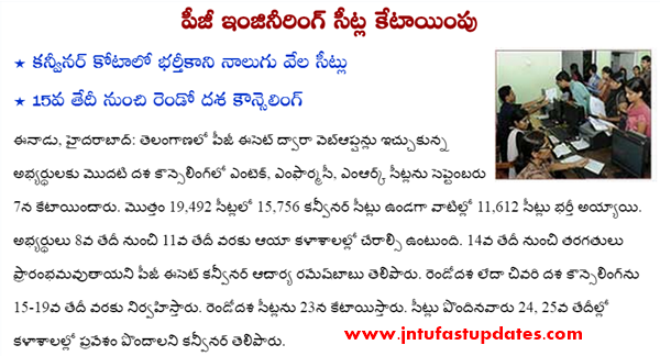 Qualified Candidates of TSPGECET-2015 who have not attended for Certificate Verification earlier shall get their Certificates verified from designated Help Line Centres mentioned in the Annexure I. The candidates who have participated in Phase-I Counseling can also exercise options using their old password, Login ID, for the leftover seats now available and consequential vacancies that may arise in the process of allotment as per the schedule given below, and it is advised to exercise options for interested Colleges assuming that vacancies are available in the course of their choice.