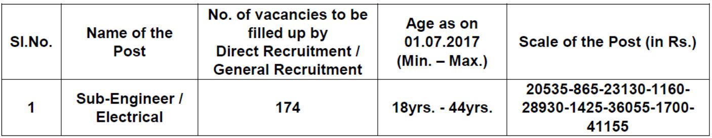 Notification for Direct Recruitment to the post of Sub-Engineer